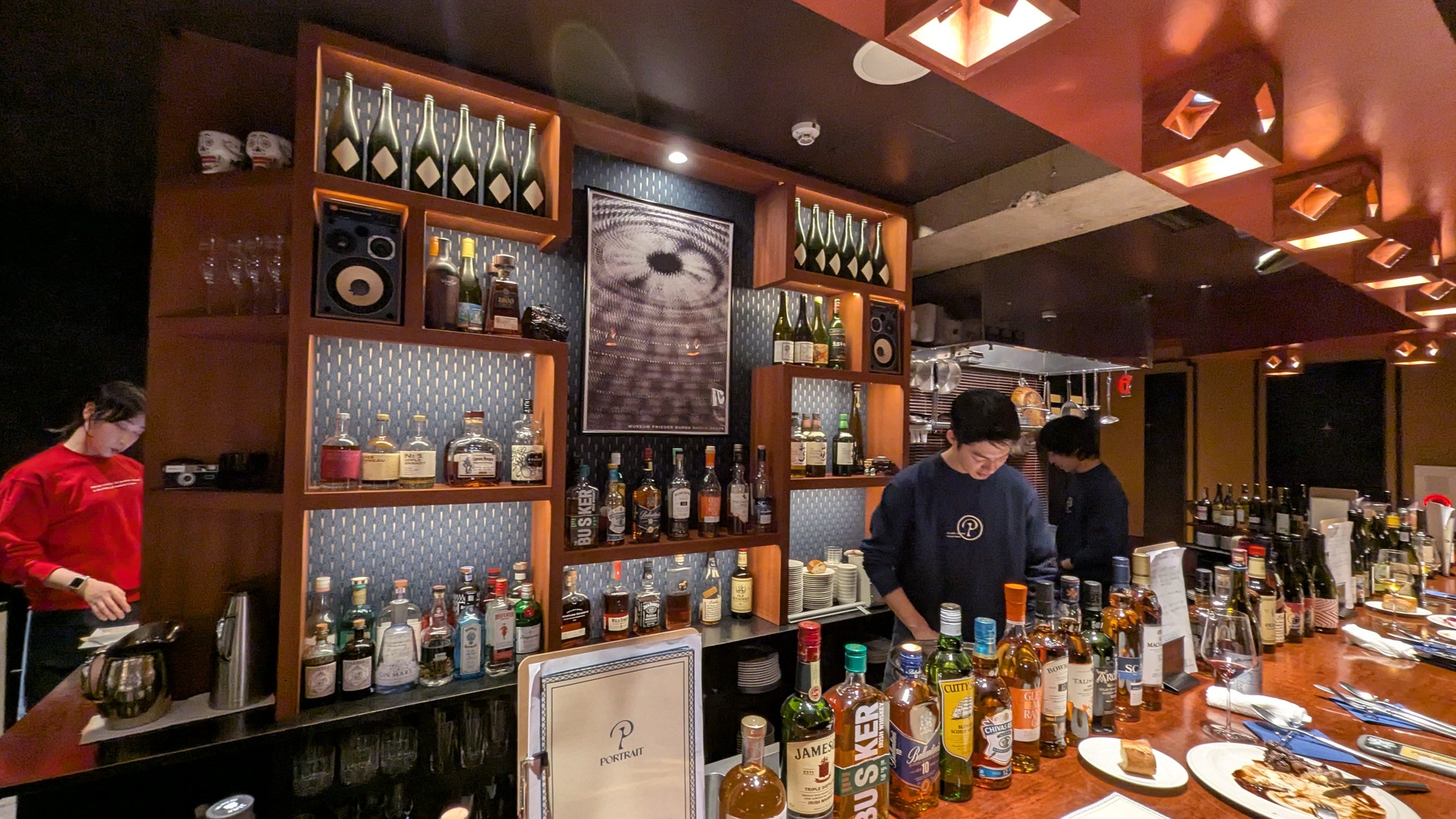 I’d stopped by Portrait, a bistro in the Fushimi neighborhood, for an impromptu dinner after eyeing the scrumptious-looking coq au vin on their Instagram account. As soon as I sat down at the bar, I noticed that the woman was digging into a plate of it. Smothered in dark, shimmering sauce, it looked just as good as the IG photo.