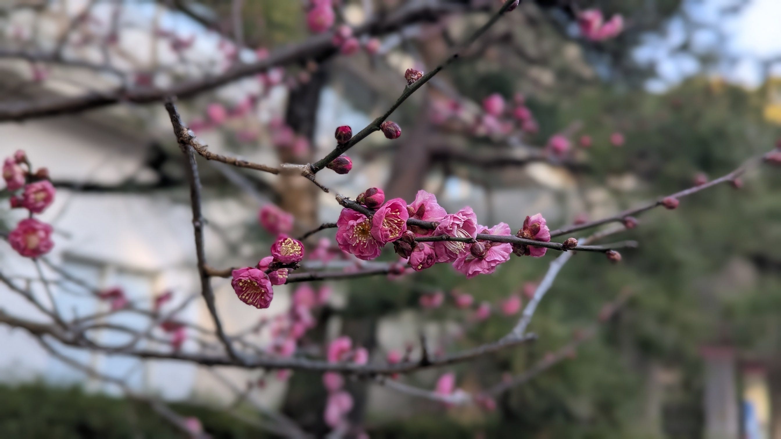 Here, the forest breathes and the air feels fresher, sweeter. Currently plum trees are in bloom with different shades of pink, a momentary show alongside solemn old evergreens.